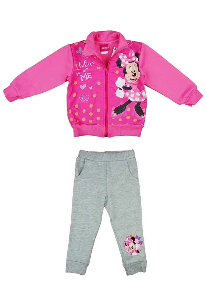 Ez a 2 részes kislány szabadidő szett, Minnie egér mintával, garantáltan elvarázsolja a kicsiket és a nagyokat egyaránt. A szett része egy oldalt zsebes, belül bolyhos, elöl cipzáros szabadidő felső, melyen a kedvenc Disney karakterünk, Minnie egér vidám képe díszeleg. A hozzá illő, szintén Minnie egér mintával nyomott, oldalt zsebes, gumis derekú, belül bolyhos szabadidő nadrág pedig kényelmes viseletet biztosít a játékos napokon. A szett színei - a vidám pink és a visszafogott szürke - tökéletesen kiegészítik egymást. Mindemellett a termék magyar származású és minőségi anyagokból készült: 65% pamut és 35% poliészter alkotja, így biztosítva a tartósságot és a kényelmet egyaránt. Engedd, hogy gyermeked is belebújjon a kényelembe ezzel a Minnie egér mintás szabadidő szettel!