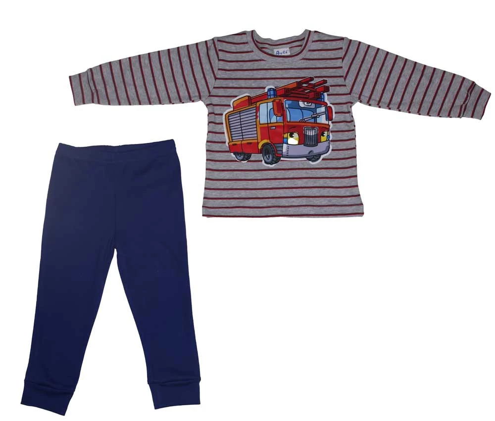 2 részes kisfiú pizsama tűzoltó mintával Készítsd fel kisfiadat édes álmokra ezzel a minőségi, magyar gyártmányú, 2 részes tűzoltó mintás pizsamával! Jjátékos mintája garantáltan elvarázsolja a kicsiket. A pizsama felsőn látványos tűzoltó minta díszeleg, ami minden kisfiú szívét megdobogtatja. A hozzátartozó nadrág gumis derekának köszönhetően kényelmes viseletet biztosít, és segíti a nyugodt, pihentető alvást. A pizsama 100% pamutból készült, ami lágyan simult a bőrhöz és nem okoz irritációt. Engedd, hogy kisfiad a hős tűzoltókkal együtt álmodjon! Minőségi magyar termék Anyaga: 100% pamut Minőség: I. osztály