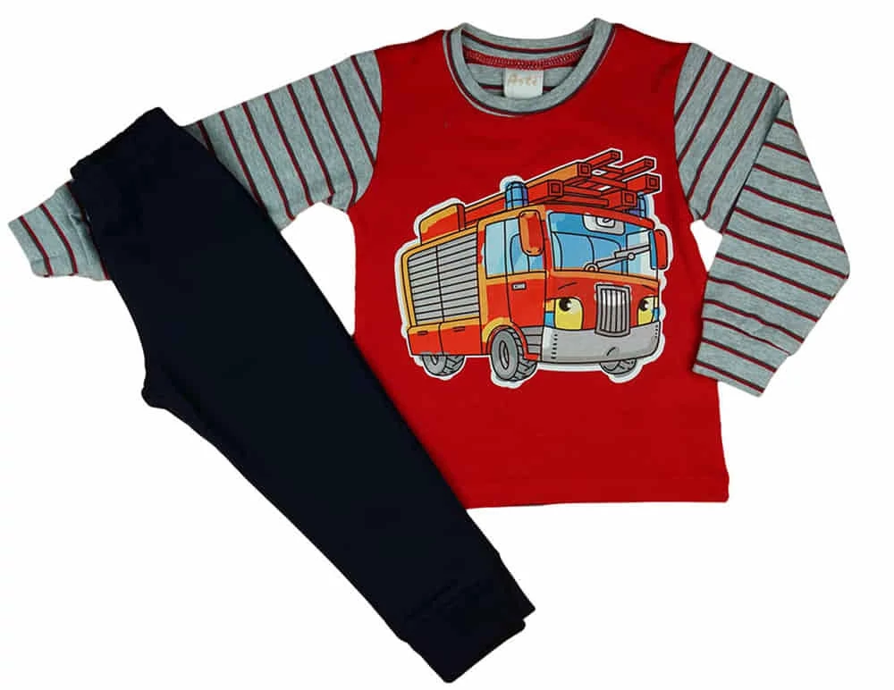 Készítsd fel kisfiadat édes álmokra ezzel a minőségi, magyar gyártmányú, 2 részes tűzoltó mintás pizsamával! Piros színe és játékos mintája garantáltan elvarázsolja a kicsiket. A pizsama felsőn látványos tűzoltó minta díszeleg, ami minden kisfiú szívét megdobogtatja. A hozzátartozó nadrág gumis derekának köszönhetően kényelmes viseletet biztosít, és segíti a nyugodt, pihentető alvást. A pizsama 100% pamutból készült, ami lágyan simult a bőrhöz és nem okoz irritációt. Minőségi I. osztályú termék a magyar Andrea Kft. gyártásában. Engedd, hogy kisfiad a hős tűzoltókkal együtt álmodjon!