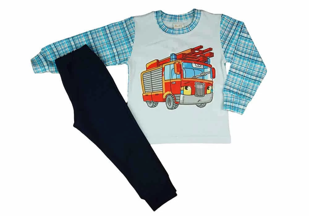 Legyen minden álma kalandos a kisfiúnak ezzel a tűzoltó mintás pizsamával! A fehér színű, 2 részes pizsama készlet minden bátor kis tűzoltó számára tökéletes választás. A felsőrészen található tűzoltó minta a bátor hősökre emlékeztet, míg a gumis derekú nadrág kényelmes viseletet biztosít az éjszakai álommanőverekhez. 100% pamut anyagának köszönhetően puha, kényelmes és bőrbarát, így biztosítva a nyugodt éjszakai pihenést. Minőségi magyar termék, mely gondoskodik gyermeked éjszakai kényelméről. Készült a megbízható Andrea Kft. által, Magyarországon.