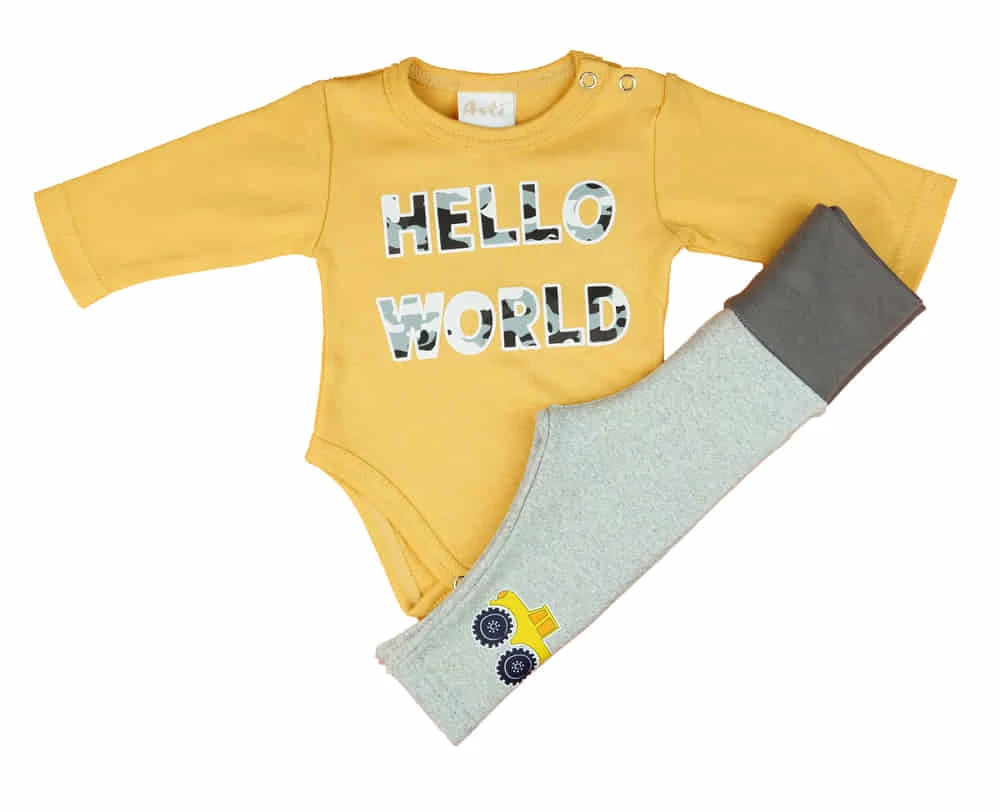 A vagány kisfiúknak semmi sem áll jobban, mint ez a 2 részes kisfiú szett. Az okker színű hosszú ujjú body és baba nadrág egyszerre stílusos és kényelmes. Kiváló minőségű pamut anyagból készült, amely puha és légáteresztő, így a baba egész nap komfortosan érezheti magát benne. A nadrág rugalmas pamutból készült, ami tökéletesen illeszkedik a baba mozgásaihoz és szabad mozgást biztosít számára. Minden részletre odafigyelünk, ezért a termékünk nikkelmentes patenttal készül, így az erre érzékeny babák sem fognak allergiás reakciót kapni. Ráadásul a szín- és formatartó anyagának köszönhetően hosszú ideig megőrzi szépségét, még számtalan mosás után is. Mindezt pedig hazai gyártóktól, a magyar minőség garanciájával. A kisfiúk imádni fogják viselni, az anyukák pedig örömmel veszik majd elő a szekrényből újra és újra!