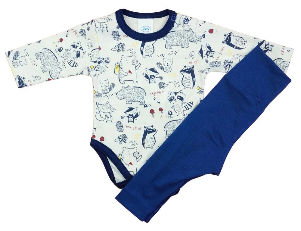 2 részes kisfiú szett mosómedvés mintával A kisfiúk divatjának legújabb trendjét képviseli ez a 2 részes szett, amelynek minden darabja Magyarországról származik. Az összeállításban található hosszú ujjú body és kényelmes baba nadrág igazán vagány és kispasis hangulatot kölcsönöz viselőjének. Mindkét darab finom pamut anyagból készült, a nadrág rugalmas pamutja pedig szabad mozgást biztosít a babának. A szett kiváló minőségű, jól mosható, szín- és formatartó anyaga miatt nemcsak a babák, de az anyukák kedvence is lesz! A body 100% pamutból, a nadrág 90% pamutból és 10% elasztánból készült, ezáltal biztosítva a kiváló minőséget. A termék nikkelmentes patenttal készül, így az érzékeny babák sem fognak allergiás reakciót tapasztalni. Minőségi magyar termék Minőség: I. osztály