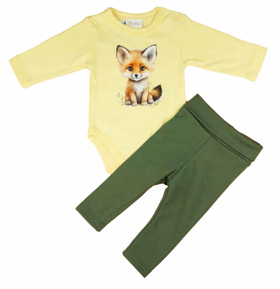Légy trendi kisfiús anyuka a 2 részes Rókás szettel, amely tökéletes választás minden kisfiú számára. A szettben található hosszú ujjú body és nadrág garantáltan nagy kedvenc lesz, hiszen a puha pamut anyag és a rugalmas nadrág minden kaland során kényelmet és szabad mozgást biztosít a kisfiúknak. Az élénk sárga szín és a mókás róka minta pedig igazán vidámmá teszi a hétköznapi öltözködést. A szett könnyen mosható, szín- és formatartó anyagának köszönhetően hosszú ideig megőrzi eredeti szépségét. A termék nikkelmentes patenttal készül, így nem okoz allergiás reakciót az erre érzékeny csemetéknél. Válaszd a minőségi magyar termékeket, és öltöztesd gyermeked a legjobbba!