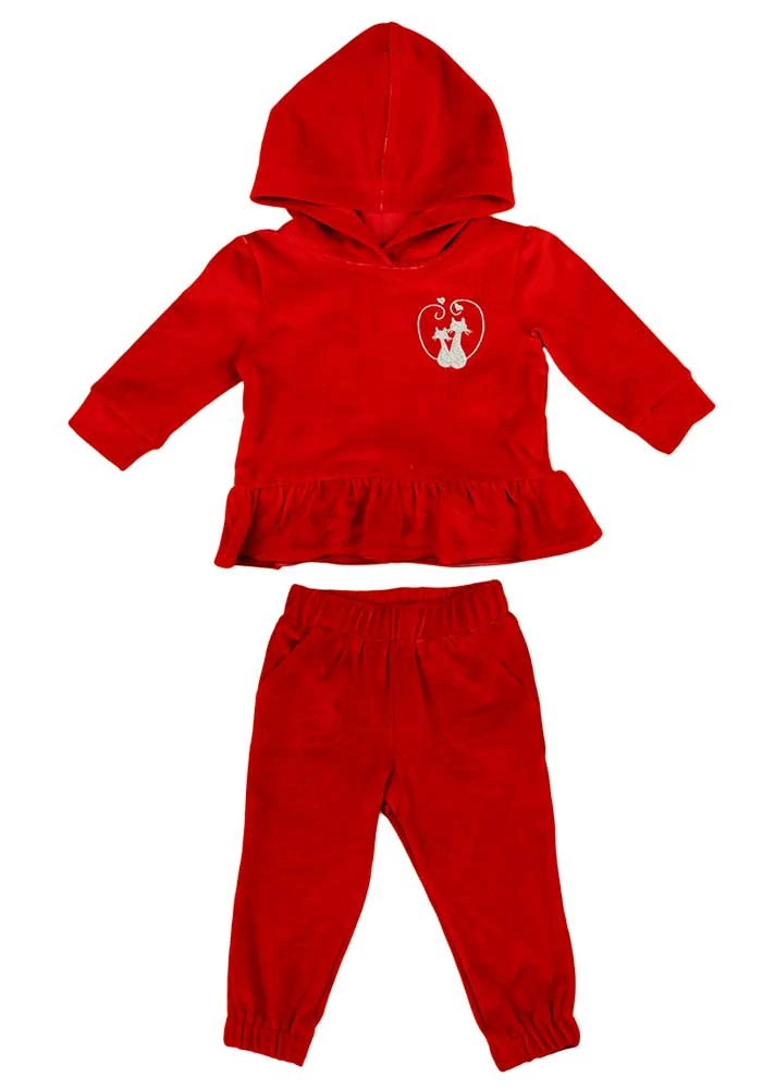 Varázsolj egy mosolyt kislányod arcára ezzel a két részes, cicás mintás szettel. A szettben található piros, kapucnis felsőn cuki cicás minta látható, melyet oldalt praktikus zsebek egészítenek ki. A deréknál és a lábszárnál gumis nadrág pedig kényelmes viseletet biztosít egész nap. Mindkét darabja plüss anyagból készült, melyben a pamut dominál (80%), így tökéletesen kombinálja a kényelmet és a minőséget. A szettet a magyar Andrea Kft. gyártja, így biztos lehetsz benne, hogy kiváló minőségű terméket kapsz kezedbe. Szerezd be most ezt a két részes kislány szettet cicás mintával, és lepd meg vele kislányod!