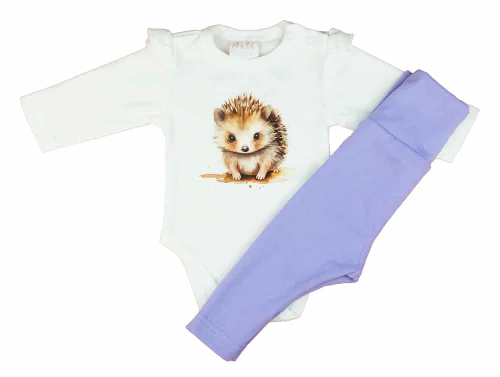 Ez a 2 részes, sünis mintával díszített kislány szett igazi ínyencség a kicsik számára. A szett egy hosszú ujjú, fodros vállú bodyból és egy baba nadrágból áll, mindegyik darabot finom, puha pamutból készítettük. A nadrág rugalmas pamut anyaga pedig gondoskodik a kényelemtől és a szabad mozgástól. A szett könnyen mosható, színei és formája hosszan megőrzi eredeti állapotát, így biztosan a szülők is imádni fogják ezt a praktikus és stílusos ruhadarabot. Büszkén ajánljuk ezt a minőségi magyar terméket, melynek anyaga az alábbiak szerint oszlik meg: a body 100% pamut, míg a nadrág 90% pamut és 10% elasztán. A termék az I. osztályba tartozik, ami a legmagasabb minőséget képviseli. Külön öröm, hogy a termék nikkelmentes patenttal készül, így az erre érzékeny babák is bátran viselhetik, nem kell attól tartanunk, hogy allergiás reakciót vált ki náluk.