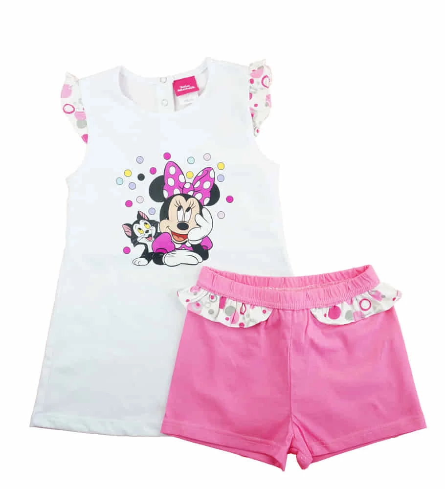 2 részes nyári szett cicás Minnie mintával Kényeztesse kislányát ezzel a 2 részes nyári szettel, amely cicás Minnie mintával díszített. A fodros ujjú póló és fodros derekú nadrág együttese garantáltan a nyár slágere lesz, melyben gyermeke a legmelegebb napokon is stílusosan és kényelmesen viselkedhet. Az eredeti Disney termék mindkét darabja 100% minőségi pamutból készült, ami lágyan simul a bőrhöz, és egész napos viseletre is ideális. A nadrág gumis dereka és enyhén elasztikus anyaga tökéletes illeszkedést biztosít, míg a póló fodros ujjai hűsölést nyújtanak a forró nyári napokon. A szett darabjai jól moshatóak, könnyen kezelhetőek és hosszú távon is megőrzik eredeti színüket és formájukat. Mindezek mellett ez a termék magyar gyártású, ami a minőségi kivitelezés garanciája. Anyaga: 100% pamut, minősége: I. osztály. Minden kislány álma egy igazán divatos és kényelmes nyári szett, amit most a Minnie mintás szettünkkel megvalósíthat!