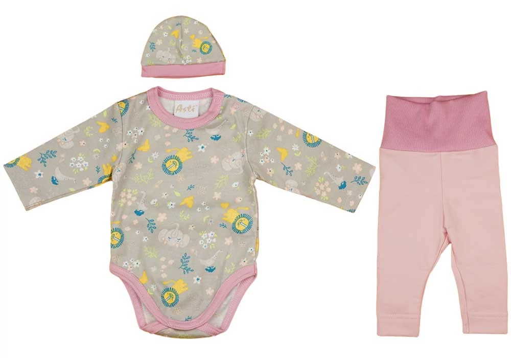 Ragadjon meg minden pillanatot a baba életéből ezzel a 3 részes babaszettben, amely állatos mintákat visel. A szett egy hosszú ujjú bodyból, egy pár babanadrágból és egy baba sapkából áll, amelyek mindegyike a legfinomabb, 100% pamutból készült. A body vállán található patentok nikkelmentesek, így nem okoznak allergiás reakciót az érzékeny bőrű babáknál. A nadrág 90% pamut és 10% elasztán összetételű, ami rugalmasságot és kényelmet biztosít a baba mozgásához. Mindez egy magyarországi gyártótól, az Andrea Kft.-től származik, így biztos lehet benne, hogy a legjobb minőségű terméket kapja. Engedje, hogy a baba stílusosan és kényelmesen fedezze fel a világot ezzel a 3 részes babaszettel!