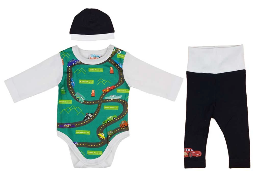 Öltöztesse fel kisfiát ezzel a hihetetlenül cuki, 3 részes Verdák mintás babaszettel. Az eredeti Disney termék szett tartalmaz egy hosszú ujjú, vállon patentos bababodyt, amit izgalmas Verdák minta díszít. A szett része továbbá egy belül bolyhos babanadrág is, ami szintén a kedvenc Verdák mintával van ellátva. A harmadik darab pedig egy belül bolyhos babasapka, ami tökéletes védelmet nyújt a hideg napokon. Minőségi magyar termék, melynek anyaga 100% pamut, míg a nadrág és sapka anyaga 90% pamut és 10% elasztán. Az I. osztályú terméket a magyarországi Andrea Kft. gyártja. A termék nikkelmentes patenttal készül, így az erre érzékeny babáknál nem vált ki allergiás reakciót. A szett kék színben pompázik, ezáltal tökéletes választás minden kis autórajongó számára.
