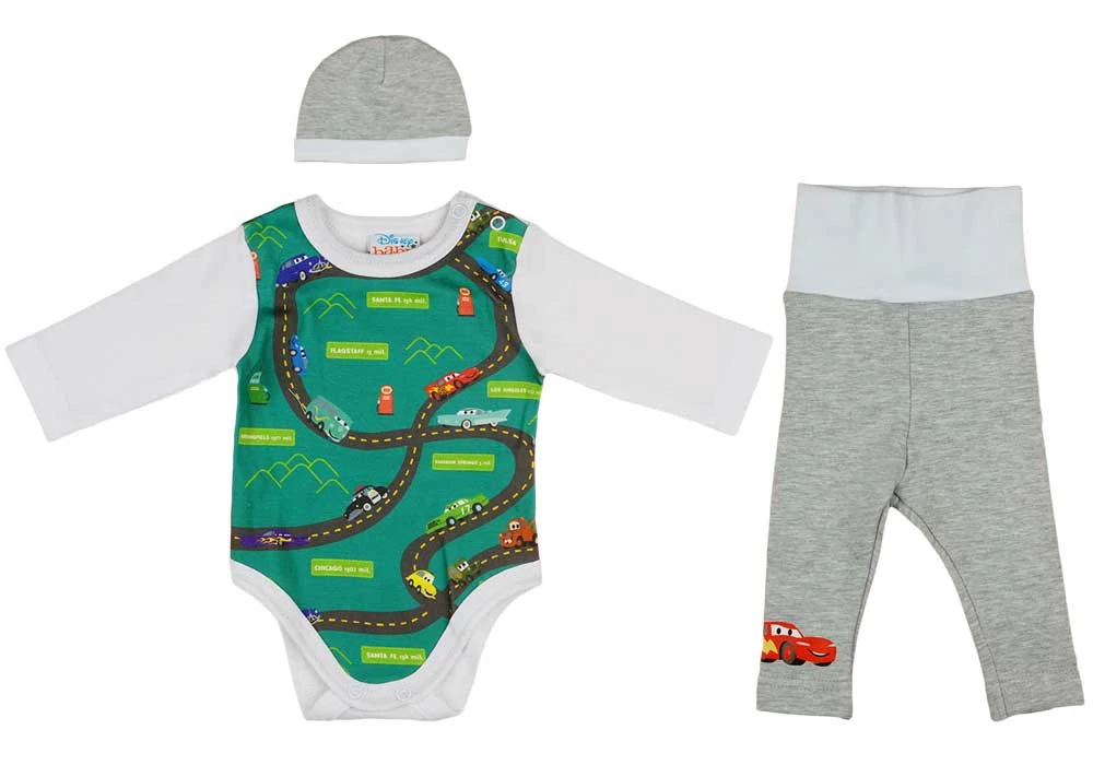 Csodálatos 3 részes baba szett, amelyet a népszerű Disney Verdák mintával díszítettünk. Az eredeti Disney termék közé tartozik a hosszú ujjú, vállon patentos baba body, amelynek szürke alapszíne tökéletesen kiemeli a vidám autós mintát. A szett többi részét egy belül bolyhos baba nadrág és egy ugyanilyen puha baba sapka alkotja, mindkettő ugyanazzal a vidám Verdák mintával. Minőségi magyar termék, amelyet 100% pamutból készült, a nadrág és a sapka anyaga pedig 90% pamut és 10% elasztán, biztosítva a tökéletes kényelmet és rugalmasságot a kis mozgócsodáknak. Az Andrea Kft., mint minőségi gyártó garancia a kiváló termékre. Nikkelmentes patentokkal készült, így nem okoz allergiás reakciót az erre érzékeny babáknál. Ezzel a szettel a legkisebbek is részesei lehetnek a Verdák nagy versenyének!