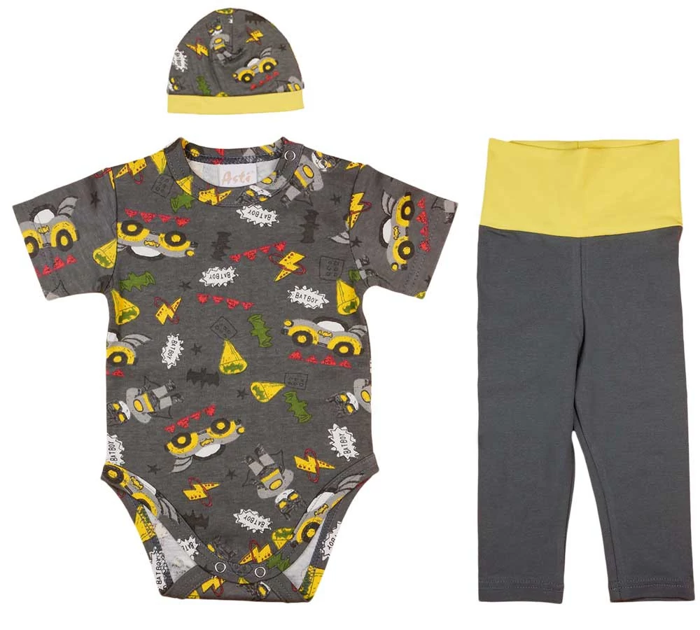 Szuperhősünk a legkisebbek között is megtalálható! A 3 részes, Batman mintás kisfiú szettünkkel gyermeked a nyári napokon is hűs maradhat, miközben a kényelmes és puha anyagban a legnagyobb kalandokat is átélheti. A szett tartalmaz egy rövid ujjú bodyt, egy babanadrágot és egy sapkát, melyek mindegyike a legfinomabb nyári pamutból készült. A nadrág rugalmas pamutja szabad mozgást biztosít, így biztos lehetsz benne, hogy gyermeked minden kalandjához kényelmes viseletet talál ebben a szettben. A minőségi magyar termék, a jól mosható, szín- és formatartó anyagok garantáltan te is hamar a kedvenceddé válnak! A szett anyaga 100% pamut, míg a sapka és a nadrág 90% pamut és 10% elasztán keverékéből készült. I. osztályú minőség, nikkelmentes patenttal, mely nem okoz allergiás reakciót az arra érzékeny babáknál.