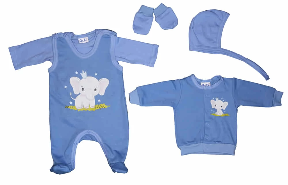 5 részes belül bolyhos kisfiú baba szett Elefánt mintával