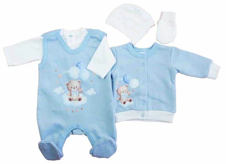 5 részes belül bolyhos kisfiú baba szett Macis mintával