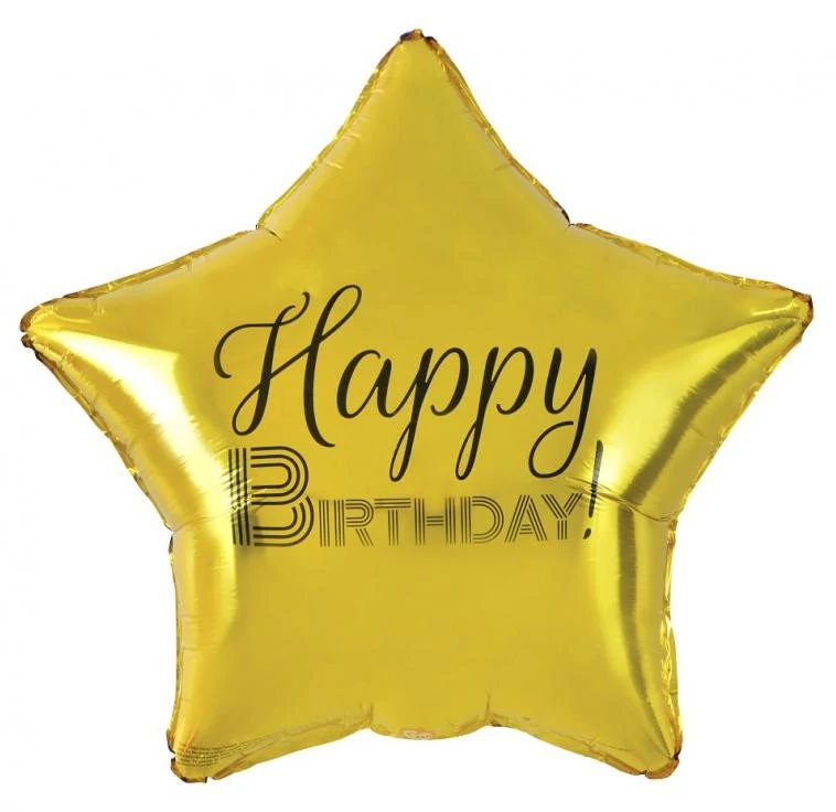 Happy Birthday Gold, Arany csillag fólia lufi 44 cm