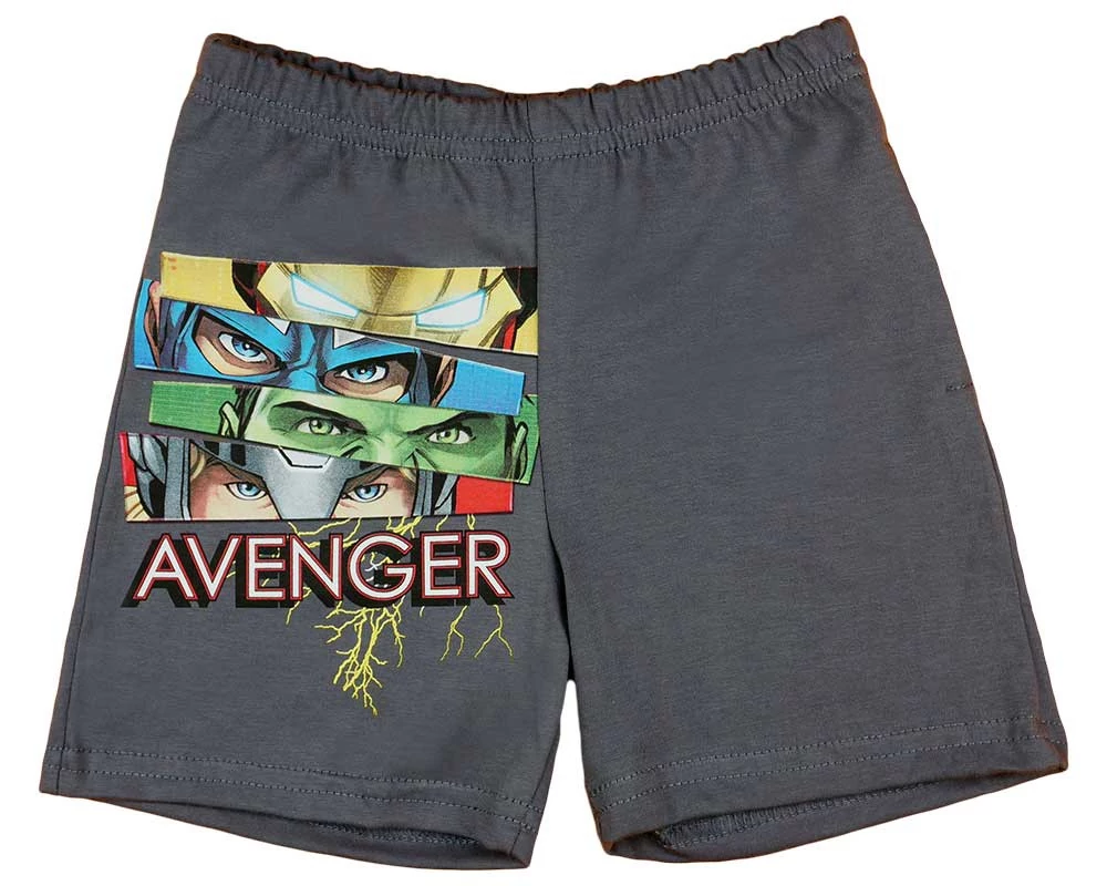 Ebben a szürke színű Bosszúállók mintás fiú rövidnadrágban minden kisfiú érezheti magát egy igazi szuperhősnek! A rövidnadrág oldalt zsebekkel van ellátva, amelyekben a gyerekek kincseiket tarthatják. Az Andrea Kft. által Magyarországon készített ez a minőségi termék 100% pamutból készült, így garantáltan kényelmes viseletet biztosít a forró nyári napokon. A termék első osztályú minőséget képvisel, így bátran ajánljuk minden kisfiúnak, akik rajonganak a Bosszúállókért.