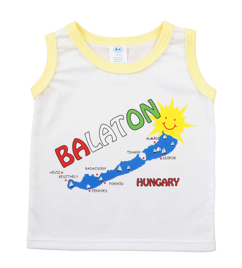Baba, gyerek feliratos "Balaton" atléta Ezzel a fehér, "Balaton" feliratos atléta a legkisebbek is stílusosan képviselhetik kedvenc nyaralóhelyüket! Az atléta gyermeked számára tökéletes választás lehet. 100% pamut anyagból készült, hogy a legnagyobb kényelmet biztosítsa a kicsiknek, miközben játék közben is divatosan öltözhetnek. A póló Magyarországon készült, így amikor ezt a pólót vásárolod, a hazai kézműveseket támogatod. Figyelem: Minőségi magyar termék, amely mellett jó döntést teszel! Minőség: I. osztály.