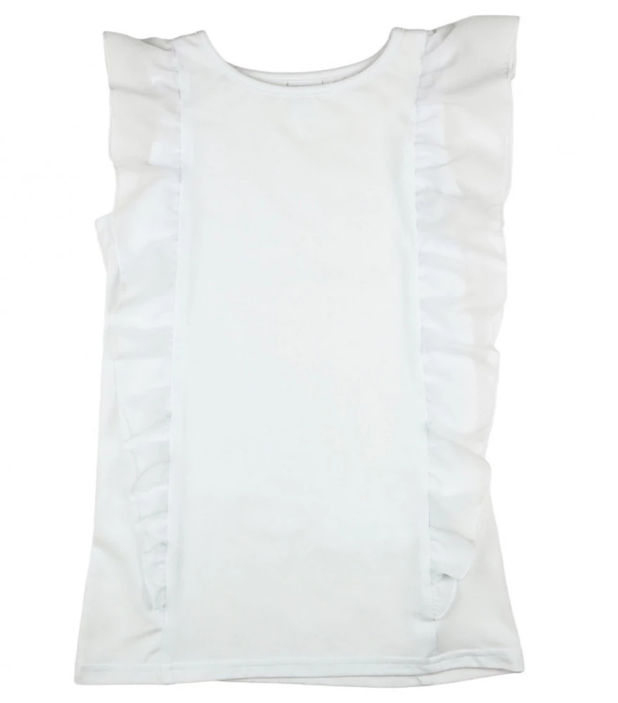 Fehér alkalmi kislány felső fodrokkal
