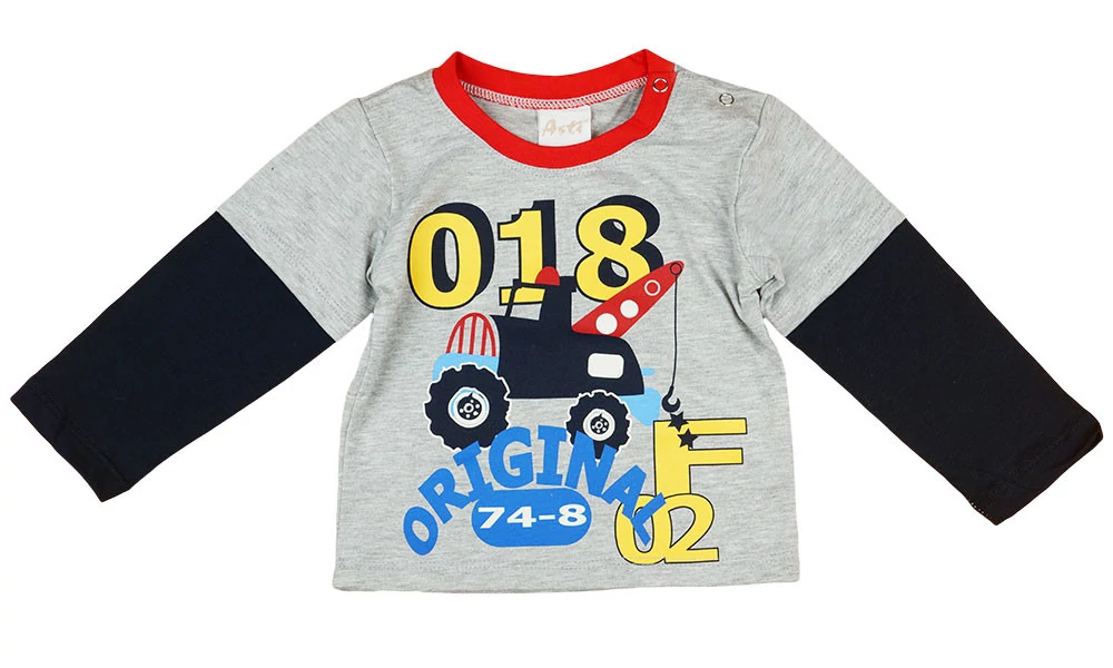 Egy igazi kis munkagép kisfiúnknak! Ez a szürke, hosszú ujjú póló, melyet Magyarországon gyártottak, kiváló minőségű pamutból készült, garantálva a tartósságot és kényelmet. A dupla ujjú kialakítás és a munkagépes minta teszi ezt a darabot igazán vagány választássá a kis energiabombák számára. Mivel a póló 100% pamutból készült, bőrbarát és légáteresztő, így egész napos viseletre is tökéletes. A minőség első osztályú, ezért biztosak lehetünk benne, hogy sokáig megőrzi szépségét. Ez a póló nem csak divatos, de praktikus választás is a mindennapokra.
