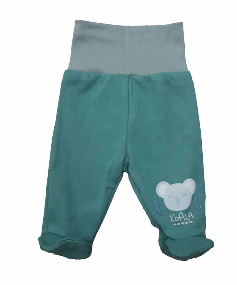 Ebben a zöld színű, Koala mintás babanadrágban a kisbabád igazi stílusos kis csöppség lesz! Készült Magyarországon, kiváló minőségű, 100% pamut anyagból, ami garantálja a tartós szín- és formaállóságot. A nadrág dereka gumis kialakítású, ami nem szorítja a baba pocakját, így kényelmes viseletet biztosít a legkisebbeknek is. A lábfején található kiscipős rész praktikus és cuki, míg a lábszáron található Koala minta pedig igazán egyedivé teszi ezt az alapdarabot. Ráadásul a könnyű pelenkacsere miatt igazán praktikus választás minden anyuka számára. Ne aggódj a mosás miatt, ez a nadrág könnyen kezelhető és jól mosható!