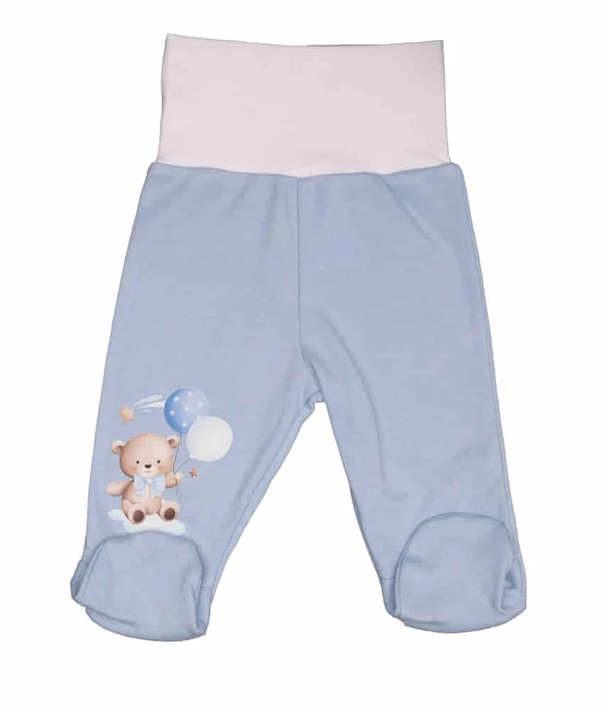 Baba nadrág lábfejjel Macis mintával Kényelem és stílus találkozása - ez a világos kék színű, maci mintás baba nadrág lábfejjel igazi alapdarab lesz kisbabád ruhatárában. Kiváló minőségű, 100% pamut anyagából készült, ami nemcsak puha és kényelmes, de jól mosható és szín- és formaálló is, így hosszú időn keresztül megőrzi frissességét. A nadrág gumis dereka gondoskodik róla, hogy a nadrág ne csússzon el, miközben nem szorítja a baba pocakját. A lábfeje pedig kiscipő formájú, ami bájos és praktikus is egyben. A nadrág könnyű pelenkacsere lehetőségét is biztosítja. Lábszárán Maci lufival nyomat található, ami igazán egyedivé teszi ezt a darabot. Minőségi magyar termék, amely garantáltan elnyeri majd a tetszésed. Minőségi magyar termék Anyaga: 100% pamut Minőség: I. osztály