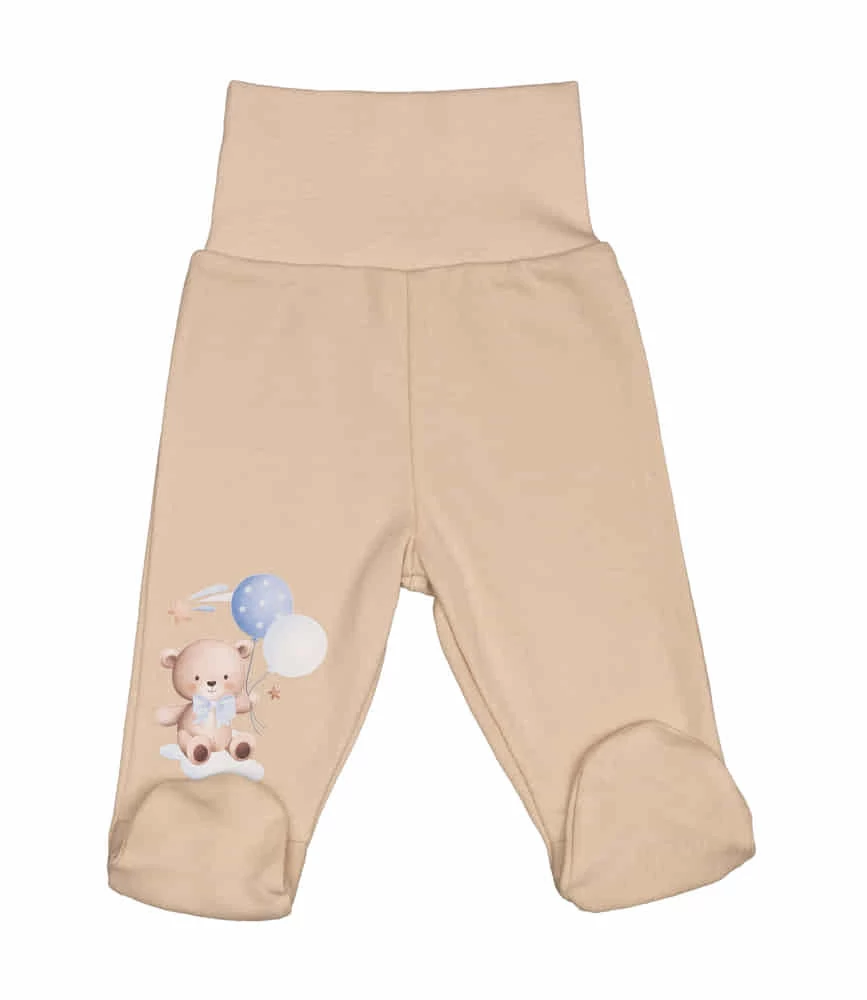 Baba nadrág lábfejjel Macis mintával Kényelem és stílus találkozása - ez a homok színű, maci mintás baba nadrág lábfejjel igazi alapdarab lesz kisbabád ruhatárában. Kiváló minőségű, 100% pamut anyagából készült, ami nemcsak puha és kényelmes, de jól mosható és szín- és formaálló is, így hosszú időn keresztül megőrzi frissességét. A nadrág gumis dereka gondoskodik róla, hogy a nadrág ne csússzon el, miközben nem szorítja a baba pocakját. A lábfeje pedig kiscipő formájú, ami bájos és praktikus is egyben. A nadrág könnyű pelenkacsere lehetőségét is biztosítja. Lábszárán Maci lufival nyomat található, ami igazán egyedivé teszi ezt a darabot. Minőségi magyar termék, amely garantáltan elnyeri majd a tetszésed. Minőségi magyar termék Anyaga: 100% pamut Minőség: I. osztály