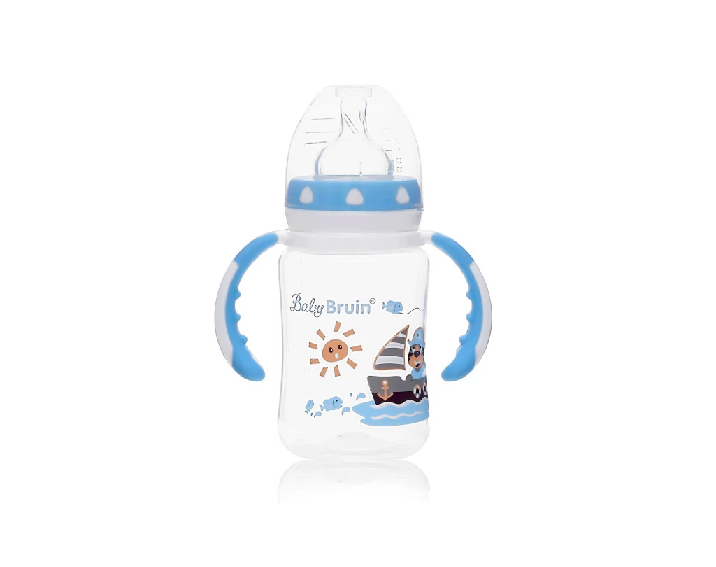 BabyBruin széles nyakú cumisüveg fogóval 240 ml kék