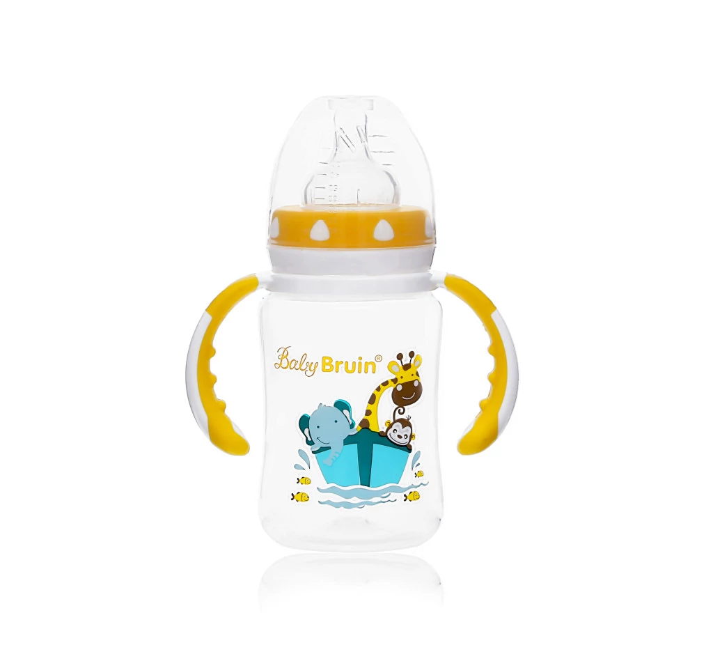 BabyBruin széles nyakú cumisüveg fogóval 240 ml sárga