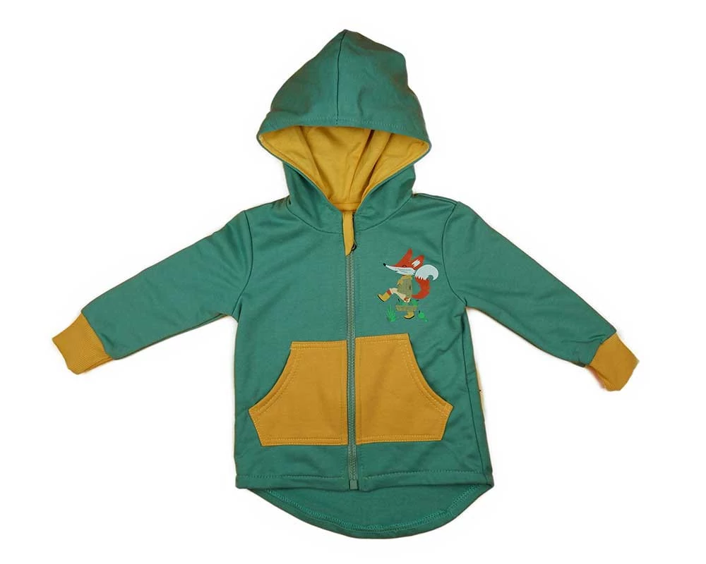 Minden kisfickó imádni fogja ezt a zöld színű, elöl cipzáras kardigánt, melynek belső oldala bolyhos, így extra meleg és kényelmes viselet a hűvösebb napokon. A kardigán elejét egy játékos róka minta díszíti, ami még vidámabbá teszi a hétköznapokat. Legyen szó óvodáról, iskoláról vagy játszótéri mókázásról, ez a kardigán tökéletes választás. Farmerrel vagy szabadidő nadrággal is remekül kombinálható. A 65% pamut és 35% poliészter anyagösszetétel garantálja a tartósságot és a kényelmet. Ezt a minőségi magyar terméket első osztályú minőségűnek minősítettük. Ajánljuk őszre és télre.