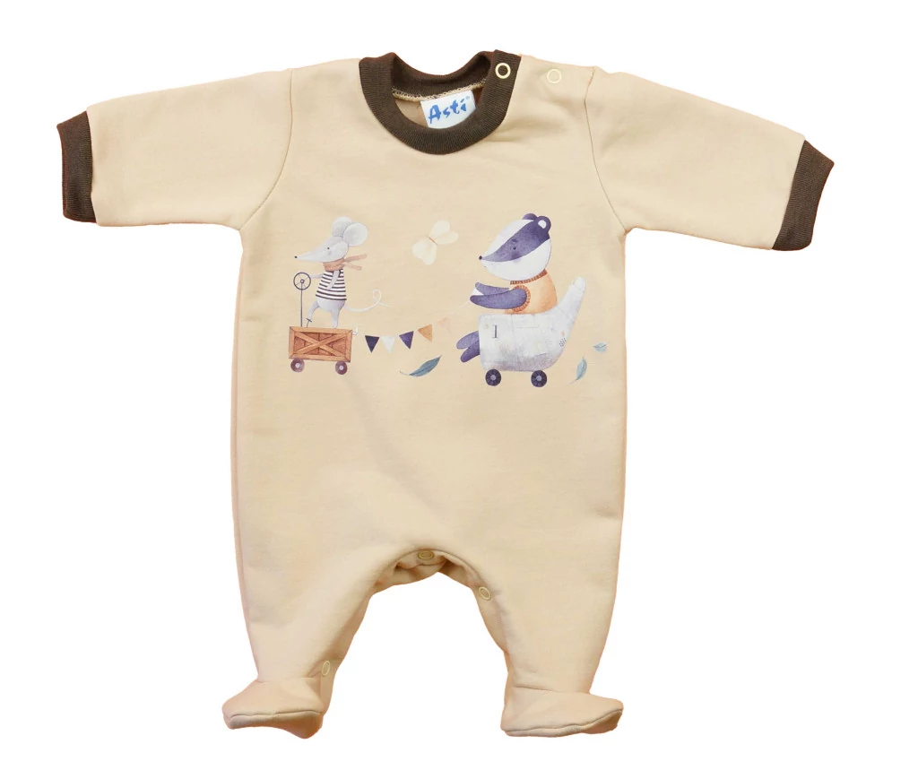 Belül bolyhos, hosszú ujjú baba rugdalózó – Állatos mintával