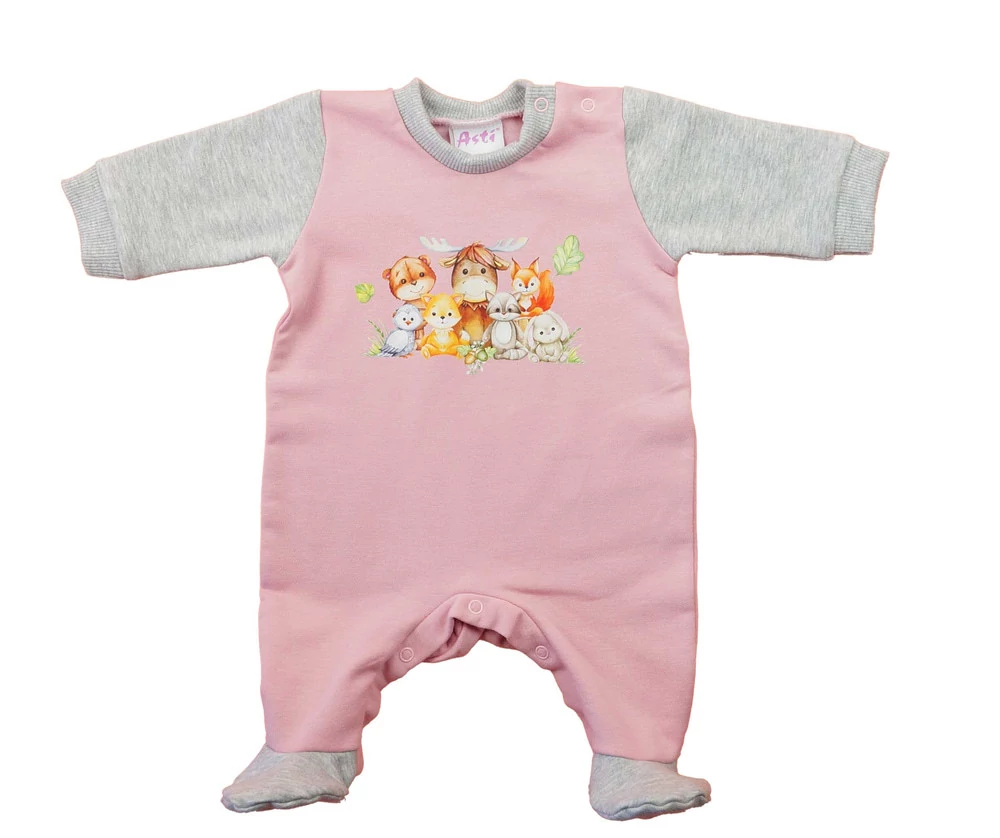 Belül bolyhos, hosszú ujjú baba rugdalózó – Állatos mintával