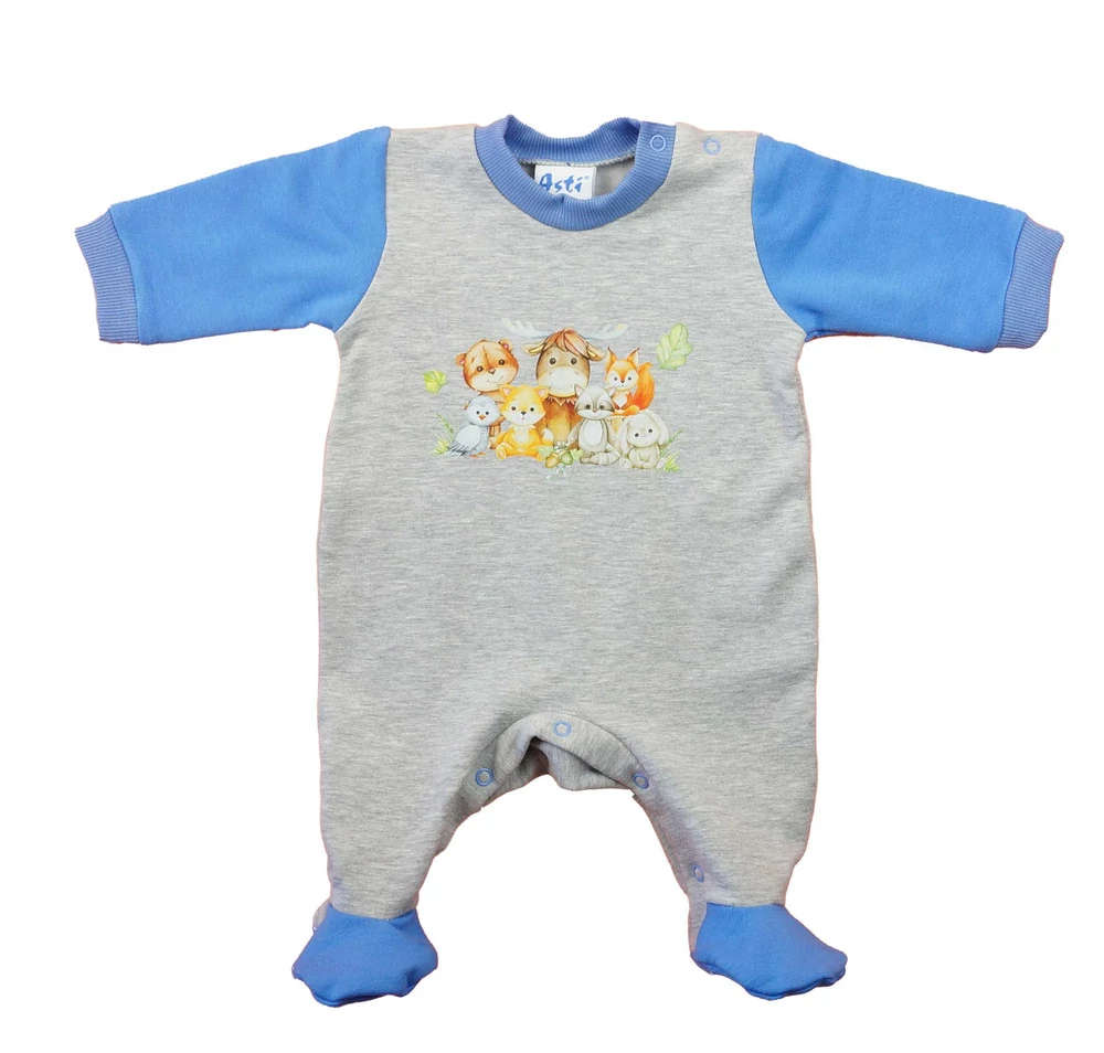 Belül bolyhos, hosszú ujjú baba rugdalózó – Állatos mintával