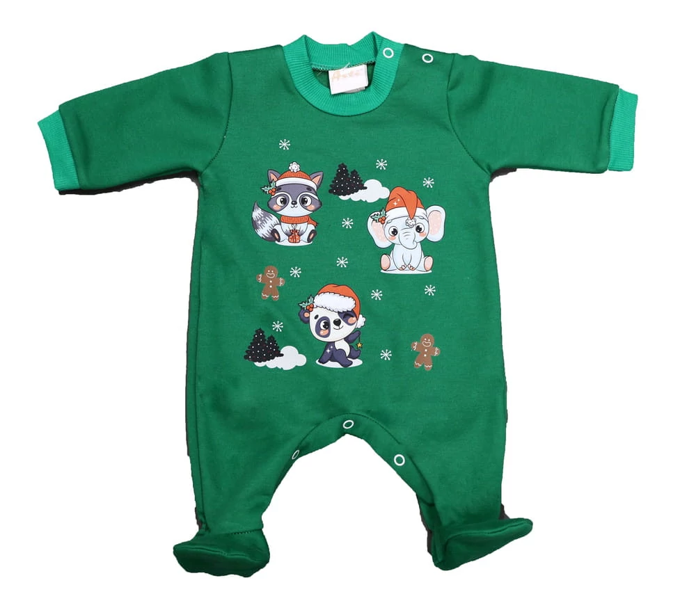 Belül bolyhos hosszú ujjú baba rugdalozó karácsonyi mintával