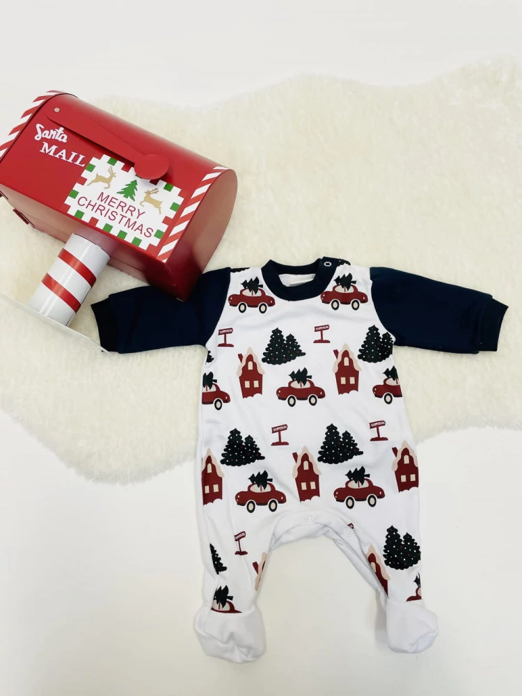 Belül bolyhos hosszú ujjú baba rugdalozó karácsonyi mintával