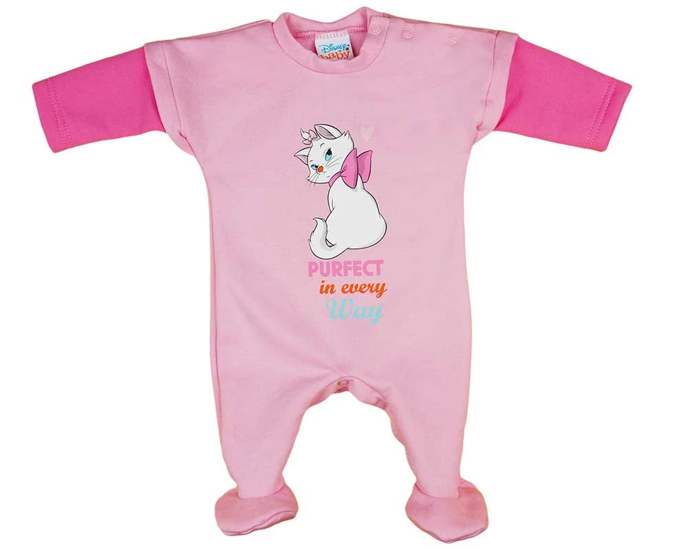 Öltöztesd be a kis hercegnődet ebbe a szuper cuki és kényelmes rugdalózóba! A rugdalózó legnagyobb sztárja a Disney kedves karaktere, Marie cica, aki édes és játékos mintájával minden napot vidámmá varázsol. A hosszú ujjú kialakítás tökéletes választás a hidegebb napokra, a belül bolyhos kialakítás pedig extra meleget és kényelmet biztosít a babának. A vállon található nikkelmentes patentok segítségével könnyedén fel- és leöltöztetheted a kicsit, emellett az érzékeny bőrű babák számára is teljesen biztonságos. A rugdalózó anyaga 65% pamut és 35% poliészter, amely garantálja a strapabíróságot és a hosszú élettartamot. Eredeti Disney termék, melyet a minőségéről ismert Andrea Kft. gyárt Magyarországon. Vidd haza a minőségi magyar terméket, hogy a kis hercegnőd is élvezhesse Marie cica varázslatos társaságát!