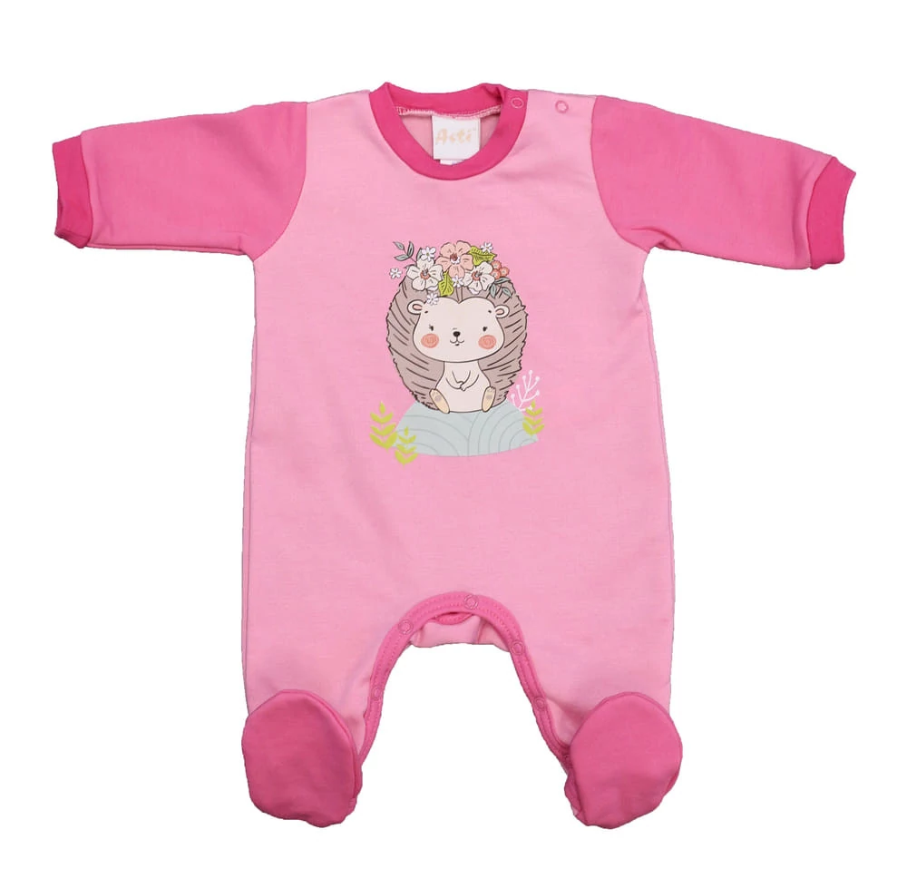 Belül bolyhos hosszú ujjú kislány rugdalózó Sünis mintával Öltöztesse kislányát ebben a rózsaszínű, Sünis mintás rugdalózóban, amelyet kifejezetten a kicsik kényelme érdekében terveztünk. Belül bolyhos bababarát anyagból készült, kényelmes viseletet biztosítva egész napra. Vállán patentos, így megkönnyíti a picik öltöztetését. A lába közötti patentos megoldás a peluscserénél nagy segítség. Jól mosható, szín- és formatartó anyagból készült. Minőségi magyar termék Anyaga: 65% pamut, 35% poliészter Minőség: I. osztály A termék nikkelmentes patenttal készül. A patent nem tartalmaz nikkelt, ezért nem vált ki allergiás reakciót az erre érzékeny babáknál.
