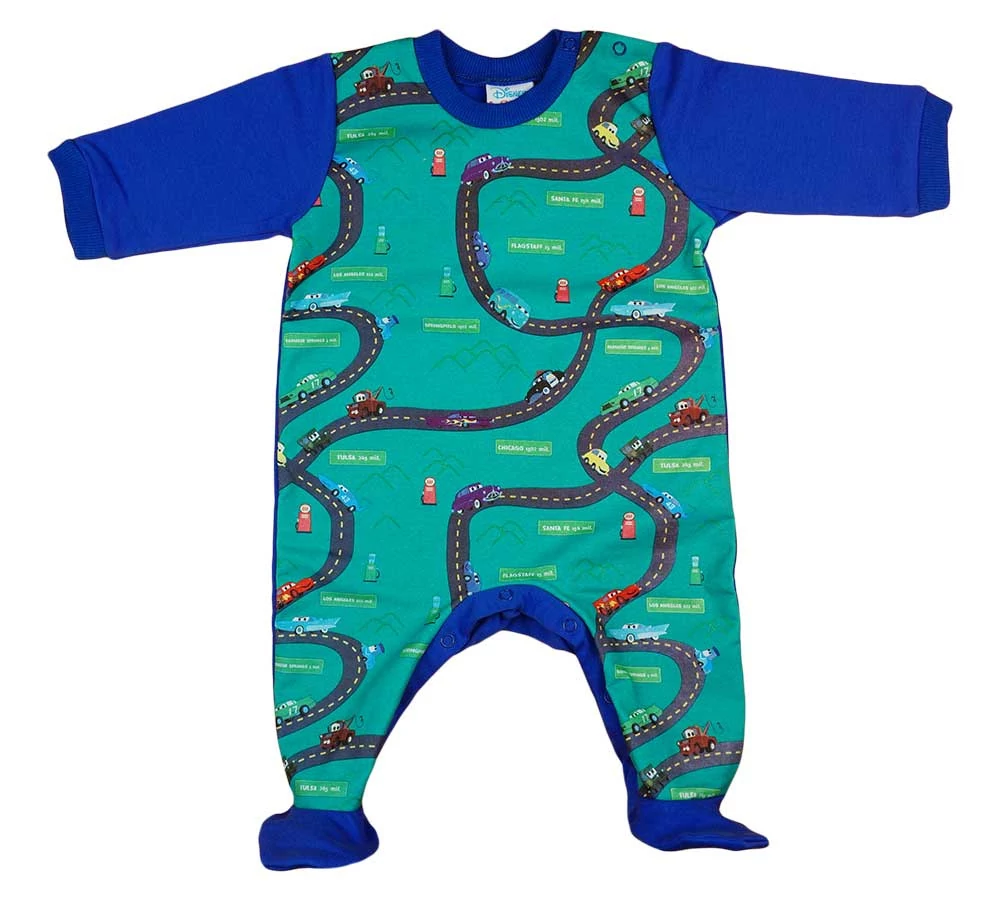 Belül bolyhos hosszú ujjú rugdalózó autós mintával