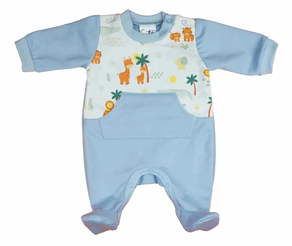 Fedezd fel ezt a gyönyörű, belül bolyhos hosszú ujjú rugdalózót, amely a Szafaris mintával varázsolja el a kicsiket és szüleiket egyaránt! A világoskék színű, kenguruzsebes rugdalózó vállán praktikus patent található, mely megkönnyíti a baba öltöztetését. A Szafaris minta, amely az egész ruhát beborítja, izgalmas és játékos, tökéletes választás minden kis felfedező számára. A rugdalózó 65% pamut és 35% poliészter anyagból készült, mely garantálja a tartósságot és a kényelmet. Ezen felül a minőségi magyar termék nikkelmentes patenttal készül, így még az erre érzékeny babák is nyugodtan viselhetik, hiszen nem vált ki allergiás reakciót. Az I. osztályú minőség pedig biztosítja, hogy a rugdalózó hosszú távon is megbízhatóan szolgálja kis tulajdonosát. Tedd boldoggá a kicsit ezzel a kedves és kényelmes rugdalózóval, amelyben minden nap új kalandok várnak rá!