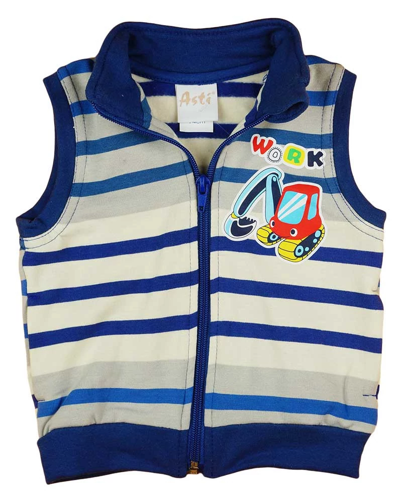 Vigye haza gyermekének ezt a bolyhos belsővel készült, munkagépes mintázatú kisfiú mellényt, ami tökéletes választás a hidegebb napokra. A kék színű, elöl cipzáras kialakítású mellény oldalt zsebekkel van ellátva, így a kicsik könnyen elrejthetik benne kincseiket. A munkagépes minta pedig garantáltan le fogja kötni a fiúk fantáziáját. A mellény Magyarországon készült, minőségi 65% pamut és 35% poliészter anyagból. Az Andrea Kft. által gyártott, I. osztályú termék hosszú élettartamot ígér.