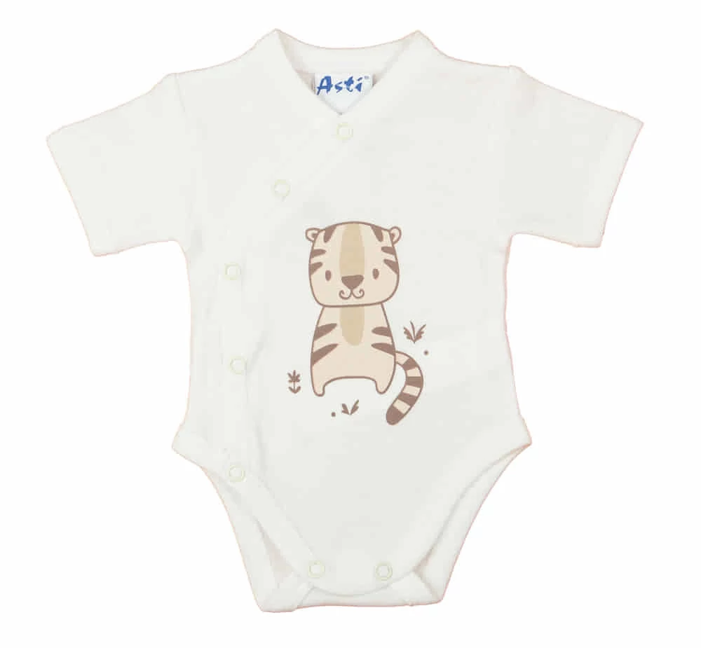 Fedezze fel ezt a puha és kényelmes rövid ujjú kombidresszt, amely biopamutból készült és elöl patentos kialakítású. A termék színe nyers, ami tökéletesen illik a nyári időszakhoz, és könnyed, friss stílust kölcsönöz a babának. A kombidressz elején egy cuki tigris nyomás látható, ami garantáltan elnyeri a kisbabák tetszését. Az itthon készült minőségi termék 100%-os biopamutból készült, amely az I. osztályú minőséget képviseli. Az organikus pamut előnyei között szerepel, hogy ellenőrzött ökológiai gazdálkodásból származik, vegyszermentes, így nem irritálja a baba érzékeny bőrét. Puhasága és elasztikussága miatt könnyen feladható a babára, így a nyári hónapokban is kényelmes viseletet biztosít. A termék nikkelmentes patenttal készül, így azok a babák is nyugodtan viselhetik, akik érzékenyek a nikkelre.