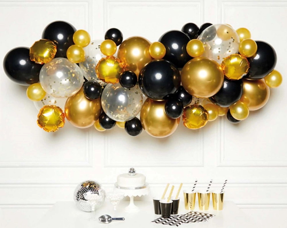 Black Gold léggömb, lufi girland 66 db-os szett