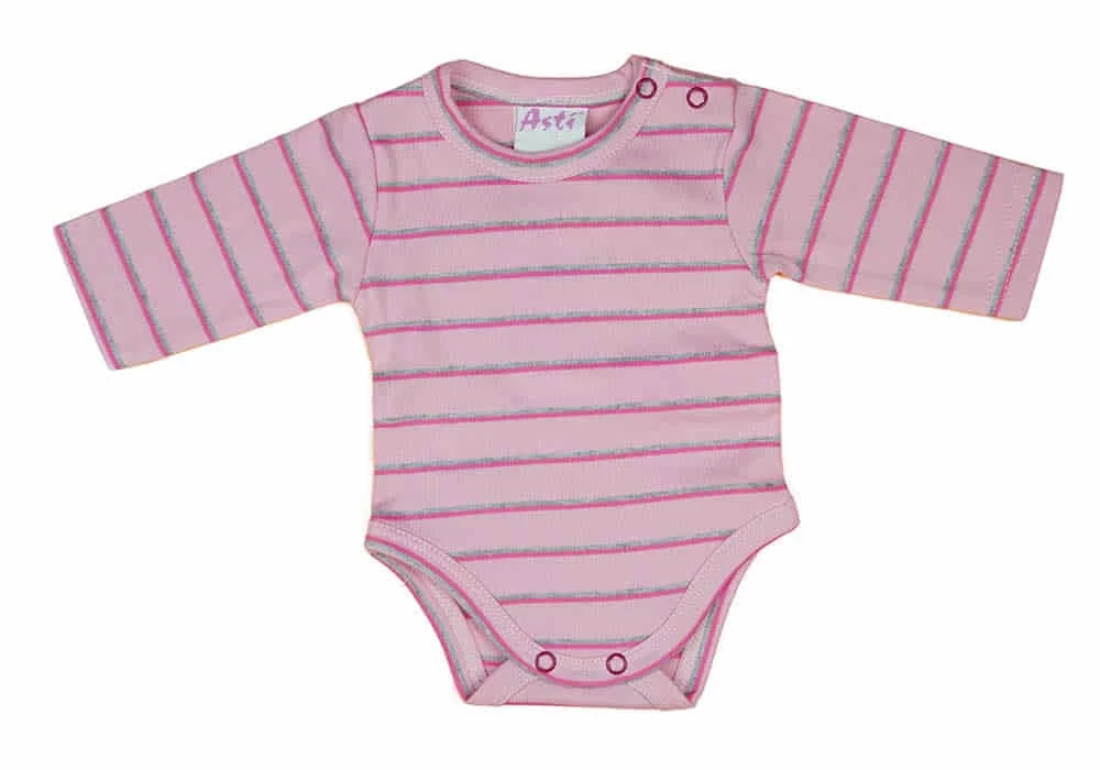 Csíkos vállonpatentos baba body
