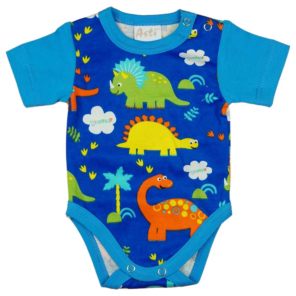 Tündéri kis dinós mintával díszített rövid ujjú baba body, melyet kifejezetten a kényelmes és praktikus viseletet kedvelő kisbabák számára készítettünk. A tervezésnél figyelembe vettük, hogy a babák bőre milyen érzékeny, ezért ez a darab 100% pamutból készült, hogy puha és kényelmes legyen az apró testen. A vállon elhelyezkedő praktikus patentok megkönnyítik az öltöztetést, és biztosítják, hogy a body a helyén maradjon. Kék színe és vidám dinós mintája miatt unisex darab, így kisfiúknak és kislányoknak is tökéletes választás. Magyar termék, amelyet nikkelmentes patenttal láttunk el, így az arra érzékeny babák sem fognak allergiás reakciót mutatni. Válaszd ezt a minőségi, első osztályú body-t, hogy babád a lehető legkényelmesebben érezze magát!