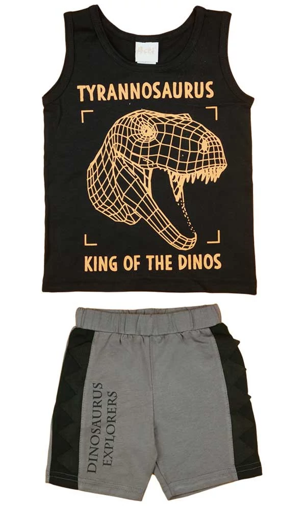 Fedezd fel a dinoszauruszok világát ezzel a vidám, dinoszauruszos mintával ellátott kisfiú nyári szettel! A vékony pamut atléta tökéletes választás a meleg nyári napokra, a dinoszauruszok pedig garantáltan lekötik a kicsiket. A szettet kiegészítő rövidnadrág a gumis derekának köszönhetően kényelmes viselet, míg az oldalt található taraj pedig tovább fokozza a dinoszauruszos hangulatot. A 100% pamut anyag minőségi és bőrbarát, így a gyerkőc egész nap szabadon szaladgálhat benne anélkül, hogy irritáció lépne fel. És a legjobb benne? Mindez egy magyar termék, amelyet a hazai Andrea Kft. gyártott. Adj esélyt a minőségi, hazai termékeknek és lepd meg a kicsit ezzel a dinoszauruszos nyári szettel!