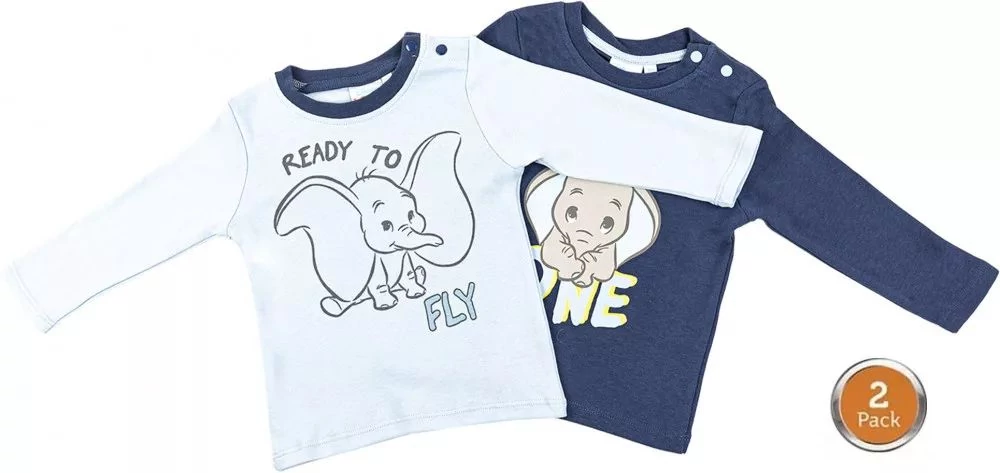 Disney Dumbo hosszú ujjú póló szett, finom pamut anyagból, 2 darabos csomagban. A hosszú ujjú gyerek pólókon a Dumbo szerepel. A minta részletesen kidolgozott a pólón. Kíméletes mosás és vasalás kifordított állapotban javasolt.