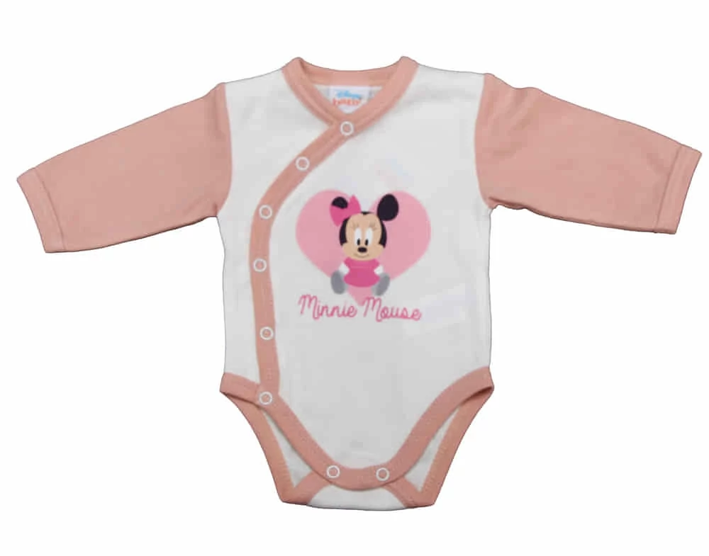 Tündéri Minnie mintával díszített hosszú ujjú baba body, amely az ön kis hercegnőjét a Disney varázslatos világába repíti. A body elöl patentos kialakítása egyszerűbbé teszi az öltözködést, míg a hosszú ujjak gondoskodnak a megfelelő melegről a hidegebb napokon. Kiváló minőségű, 100% pamutból készült, ami biztosítja a kényelmet és az érzékeny bőrű babák számára is ideális. Mivel eredeti Disney termék, garantáltan mosás után is tartós és színálló marad. Az anyag minőségét az I. osztályú besorolás igazolja. Büszkén mondhatjuk, hogy ez a termék magyar, EU-s termék, ami a legmagasabb minőségi előírásoknak megfelelően készül. A patentok nikkelmentesek, így az arra érzékeny babák sem fognak allergiás reakciót tapasztalni. Ezzel a bodyval a mindennapok is varázslatosabbá válnak!
