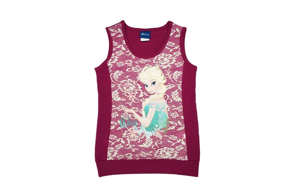 Csempéssz egy kis varázslatot a lányod ruhatárába ezzel a bájos Jégvarázs-mintás ujjatlan felsővel! A Disney hivatalos terméke, melyet az eredeti Elsa karakter ihletett, és amit flitterek díszítenek, hogy a hétköznapok is csillogóbbak legyenek. Az elöl csipke hatású rész nőies, mégis játékos megjelenést kölcsönöz, míg az alul passzés kialakítás a kényelmet szolgálja. Anyaga 90% pamut és 10% elasztán, így biztosítja a hosszútávú kényelmet és a könnyű mozgást. Minőségi I. osztályú, magyar termék, mely minden kislány gardróbjában helyet érdemel.