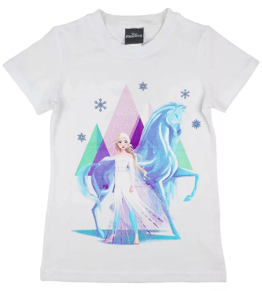Disney Frozen, Jégvarázs gyerek rövid ujjú póló. A gyerek póló finom tapintású, kényelmes pamut anyagból készült, mintázata anyagba nyomott, tartós nyomású. A rövid ujjú lányka pólón Elsa királynő mintája részletgazdagon kidolgozott, jégvarázs mozifilmek motívumaival díszítve. Eredeti Disney ruházat, magyar termék.