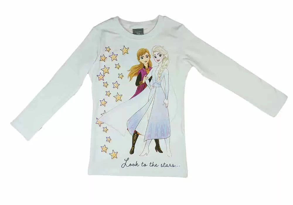 Disney Frozen, Jégvarázs gyerek lányka hosszú ujjú póló, felső. A gyerek póló finom tapintású, kényelmes pamut anyagból készült, mintázata anyagba nyomott, tartós nyomású. A hosszú ujjú lányka pólón Elsa és Anna királynő mintája részletgazdagon kidolgozott, jégvarázs mozifilmek motívumaival díszítve. Eredeti Disney ruházat, magyar termék.