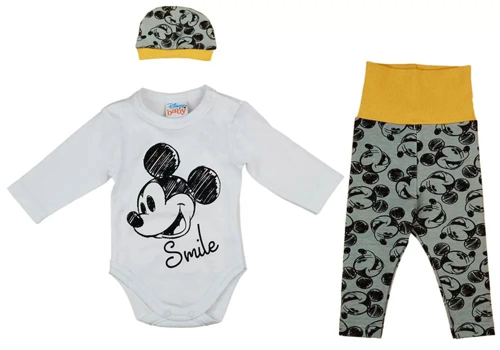Disney Mickey 3 részes babaruha szett, mely tökéletes választás már újszülött kortól kezdődően. A szett 56 és 62-es méretekben tökéletesen használható hazahazós szettként is. A babaruha szett finom, pamut anyagból készült, szem előtt tartva a kisbabák igényeit, a szett magas minőségű, magyar termék. A kisfiú babaruha szett nikkelmentes patenttal készült, így nem vált ki allergiás reakciót az arra érzékeny babáknál.