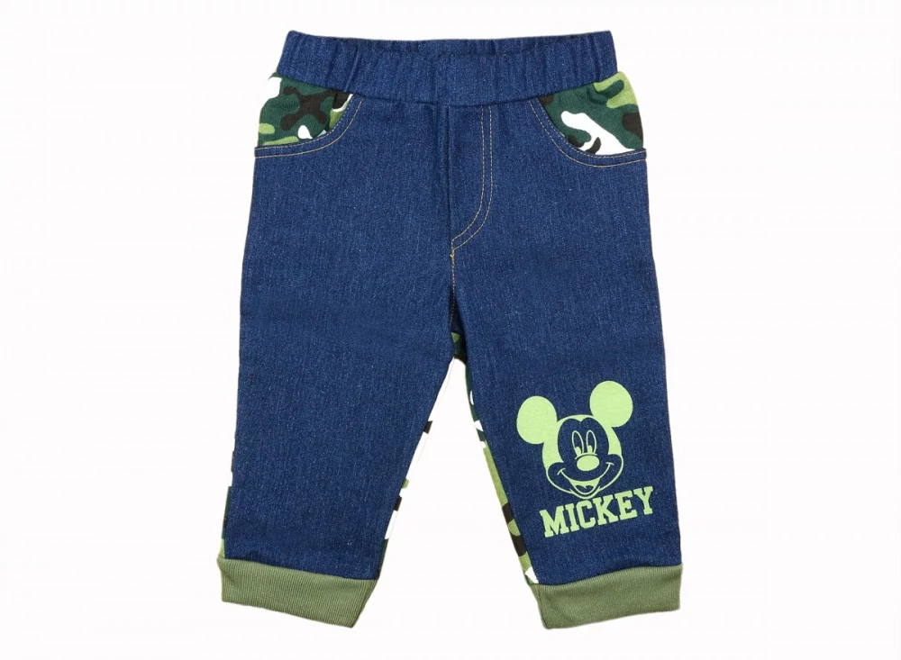 Mickey mintával nyomott, terepmintás (belül bolyhos) és farmer anyagból készült, zsebekkel ellátott nadrág.
