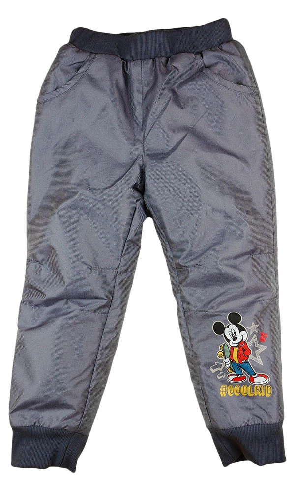A Disney Mickey bélelt vízlepergetős nadrág tökéletes választás minden kisfiúnak, aki szereti a kalandokat, még a hideg, nedves időben is. Az eredeti Disney termék, Mickey mintával nyomott, oldalt zsebes kialakítás még mókásabbá teszi a viseletet. A polár bélés garantálja a meleget és a kényelmet, míg a vízlepergetős anyag biztosítja a szárazságot. A minőségi magyar termék, melynek anyaga 100% poliészter, így könnyen tisztítható és tartós használatot biztosít. Az I. osztályú minőség garantálja, hogy a nadrág hosszú ideig ellenáll a gyermeki játéknak és mókának. Szürke színben kapható, mely minden ruhadarabhoz könnyen kombinálható.